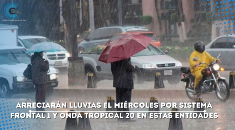 Arreciarán lluvias el miércoles por sistema frontal 1 y onda tropical 20 en estas entidades