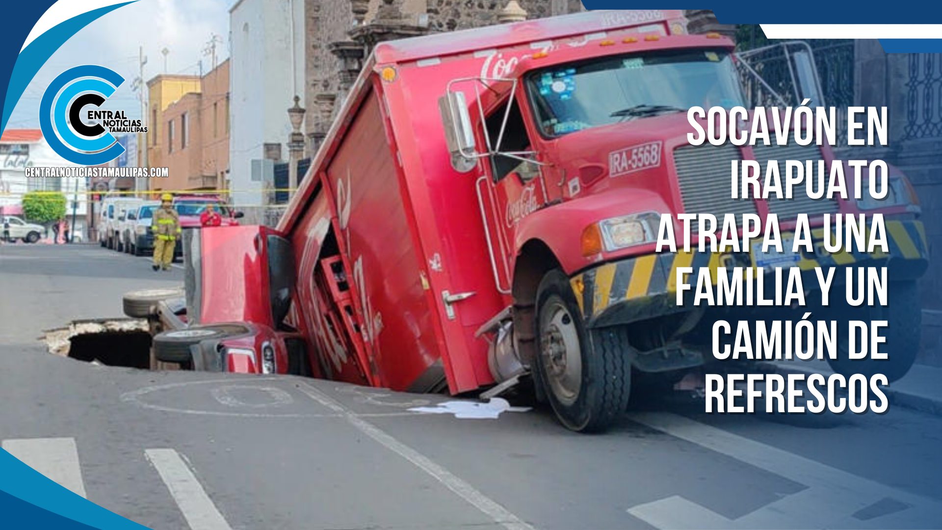 Socavón en Irapuato atrapa a una familia y un camión de refrescos
