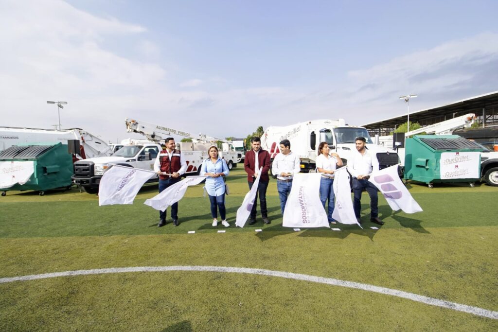 Matamoros, Tamaulipas – En un esfuerzo por transformar los servicios públicos de Matamoros, el alcalde José Alberto Granados Fávila encabezó esta mañana la entrega de cinco camiones compactadores, contenedores para desechos y equipo de alumbrado público, ante la presencia de autoridades locales, trabajadores de servicios públicos y la comunidad en general.