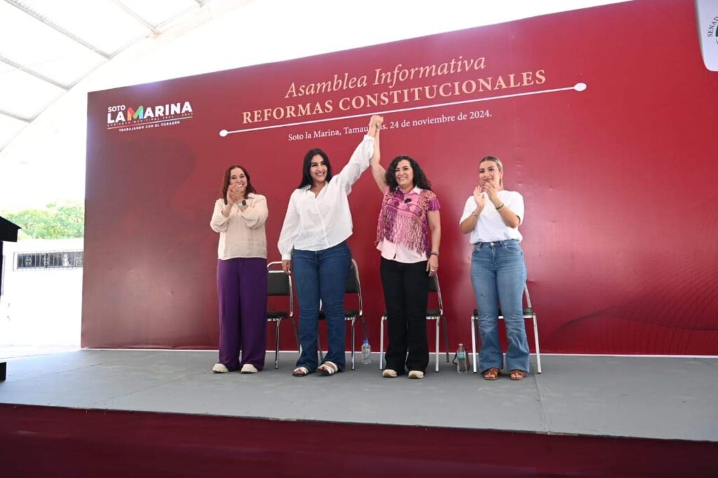 Ante cientos de personas que asistieron a esta gran asamblea informativa en Soto La Marina y que se dedican a diversas actividades productivas, entre ellas la pesca y el campo, la senadora Olga Sosa se refirió a las reformas de bienestar, porque los programas son derechos sociales y los apoyos anuales para campesinos, agricultores y pescadores están contemplados en la ley, señalando que los programas implementados durante el gobierno del expresidente Andrés Manuel López Obrador continúan, pero habrá más adultos mayores recibiendo el apoyo y más personas con discapacidad permanente recibiendo su pensión.