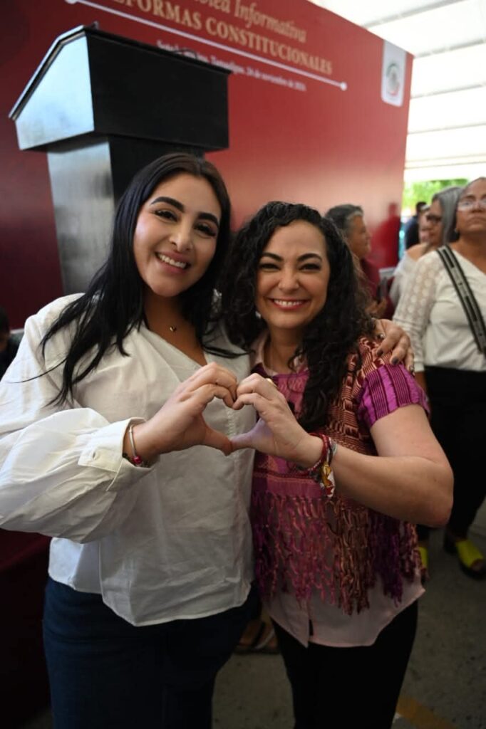 En compañía de la presidenta municipal de esta ciudad, Glynnis Jiménez Vázquez, la presidenta del DIF municipal María Fernanda Jiménez Vázquez y la subsecretaría de Proyectos de la Secretaría de Obras Públicas, Dominga Cepeda Beas; la senadora por la República habló sobre tres importantes reformas que benefician directamente al pueblo.