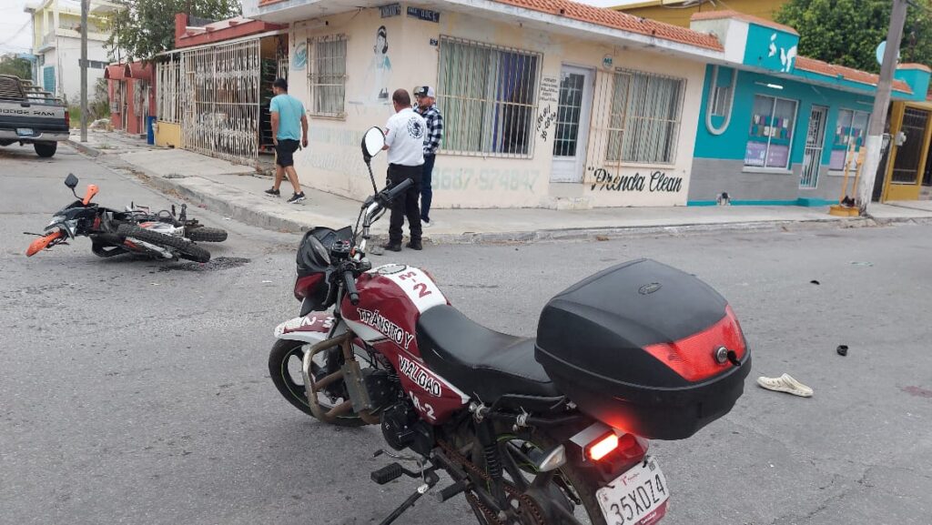 Testigos que presenciaron el fuerte accidente en la calle 12 y Laguna Salada, señalaron que un motorista no hizo alto, y al avanzar fue impactado por un vehículo de la marca, Nissan, Sentra.