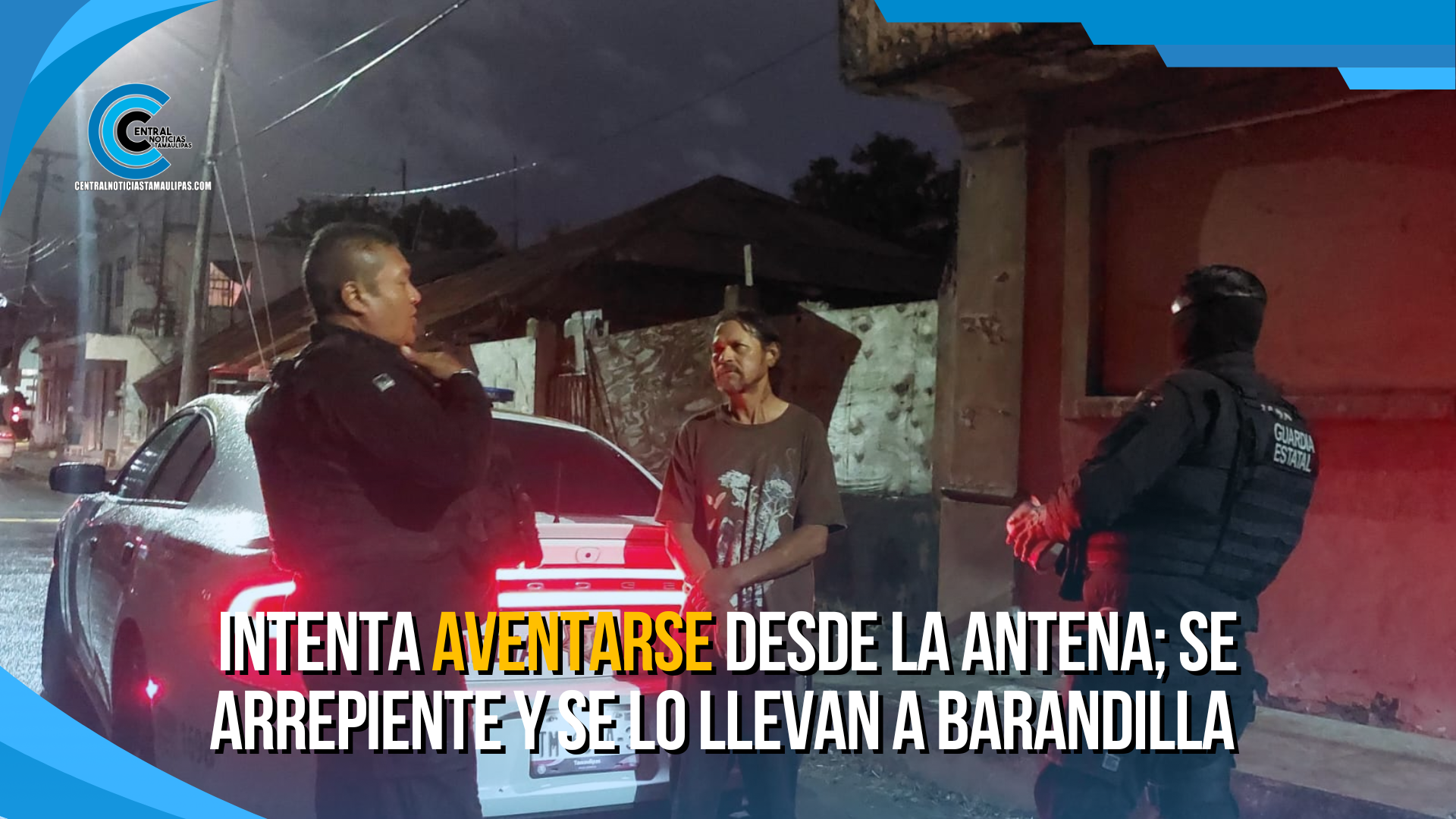 Intenta aventarse desde la antena; se arrepiente y se lo llevan a barandilla
