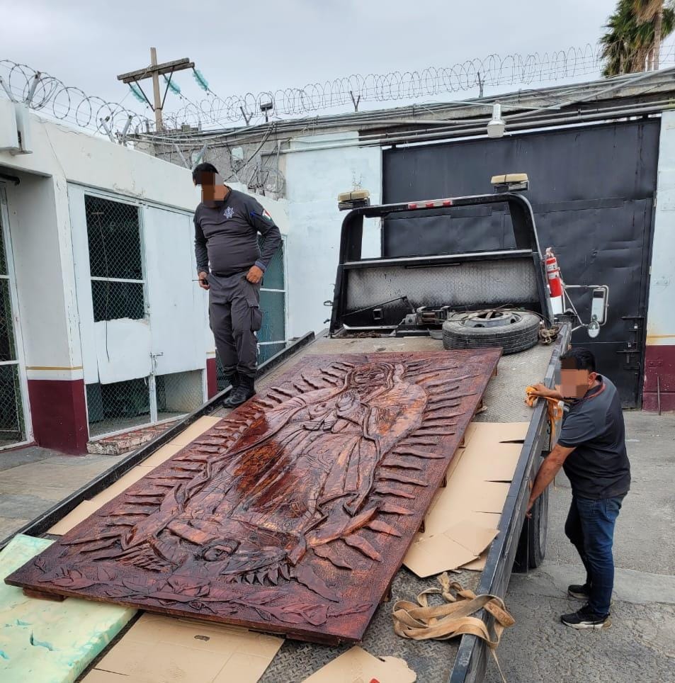 Matamoros, Tamaulipas.- Resultado de un trabajo artesanal realizado por personas privadas de la libertad (PPLs) en el Centro de Ejecución de Sanciones (CEDES) de Matamoros, se realizó la donación de una imagen de la Virgen de Guadalupe labrada en madera a la Diócesis de Matamoros.