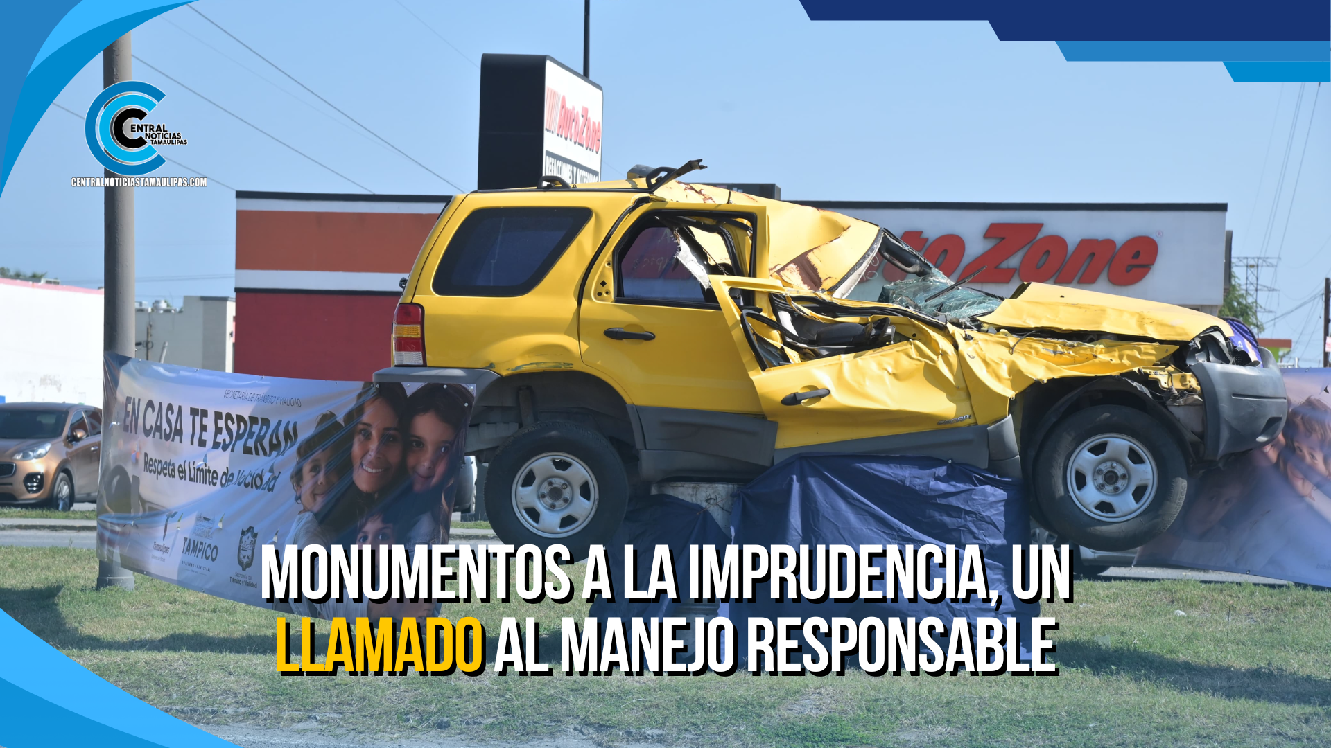 A fin de reforzar el manejo responsable de automovilistas y transportistas durante el periodo decembrino, el Ayuntamiento de Tampico a través de la Secretaría de Tránsito y Vialidad instaló en sitios estratégicos, vehículos siniestrados, como una forma de generarar mayor conciencia al volante.
