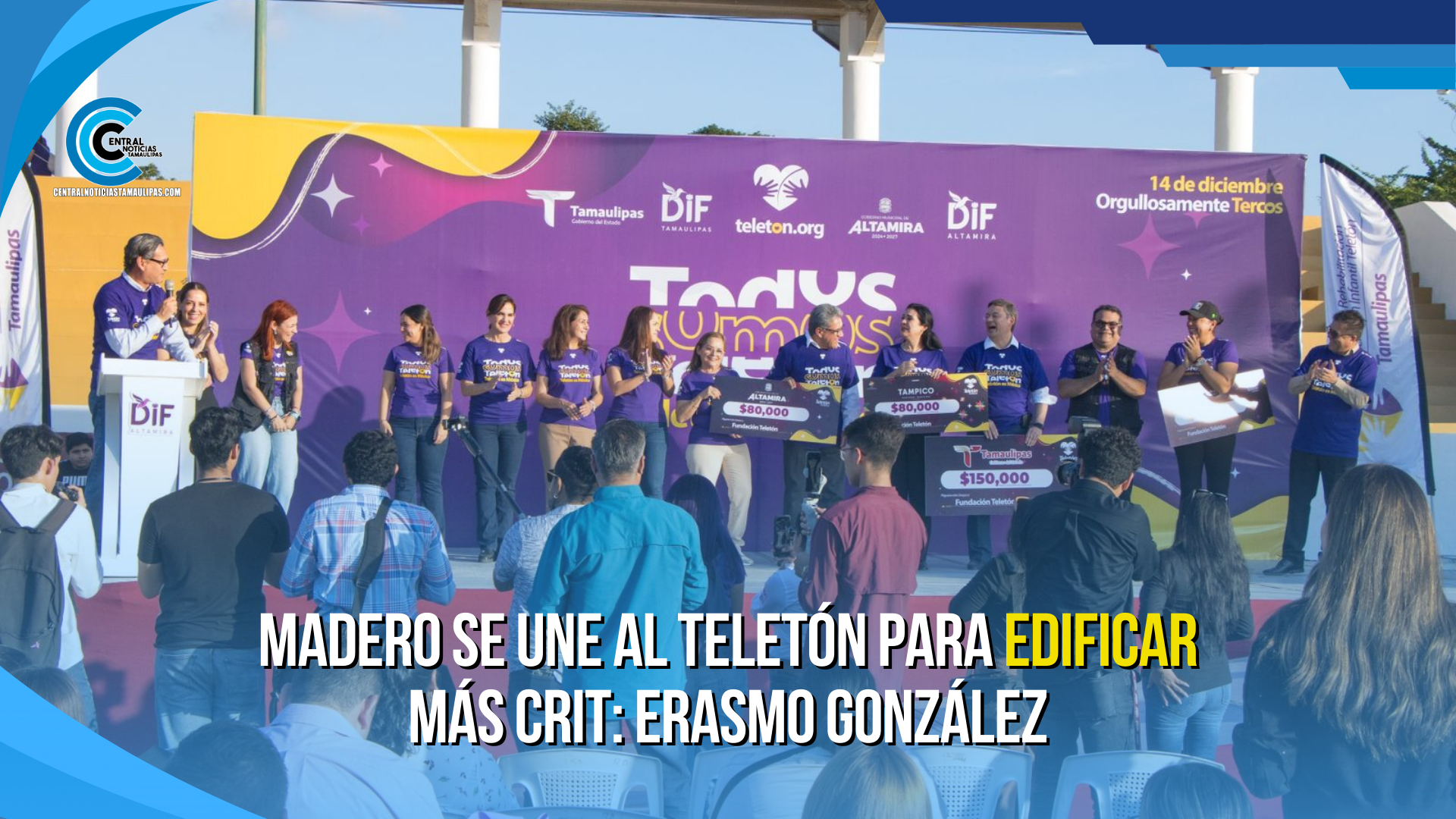 Con este mensaje del presidente municipal Erasmo González Robledo, junto a su esposa Dunia Marón Acuña, se unió al Teletón nacional y realizó una donación de 80 mil pesos, donde asistió en representación del Gobernador del Estado Dr. Américo Villarreal Anaya, el gerente de COMAPA SUR Mtro. Francisco José González Casanova que hizo una aportación del Gobierno del Estado por 150 mil pesos; además se llevó a cabo de manera simultánea con aportaciones similares de los Ayuntamientos de Tampico, representados por la alcaldesa Mónica Villarreal Anaya, y de Altamira, a cargo de Armando Martínez Manríquez.