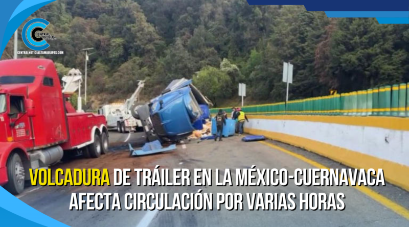 Volcadura de tráiler en la México-Cuernavaca afecta circulación por varias horas