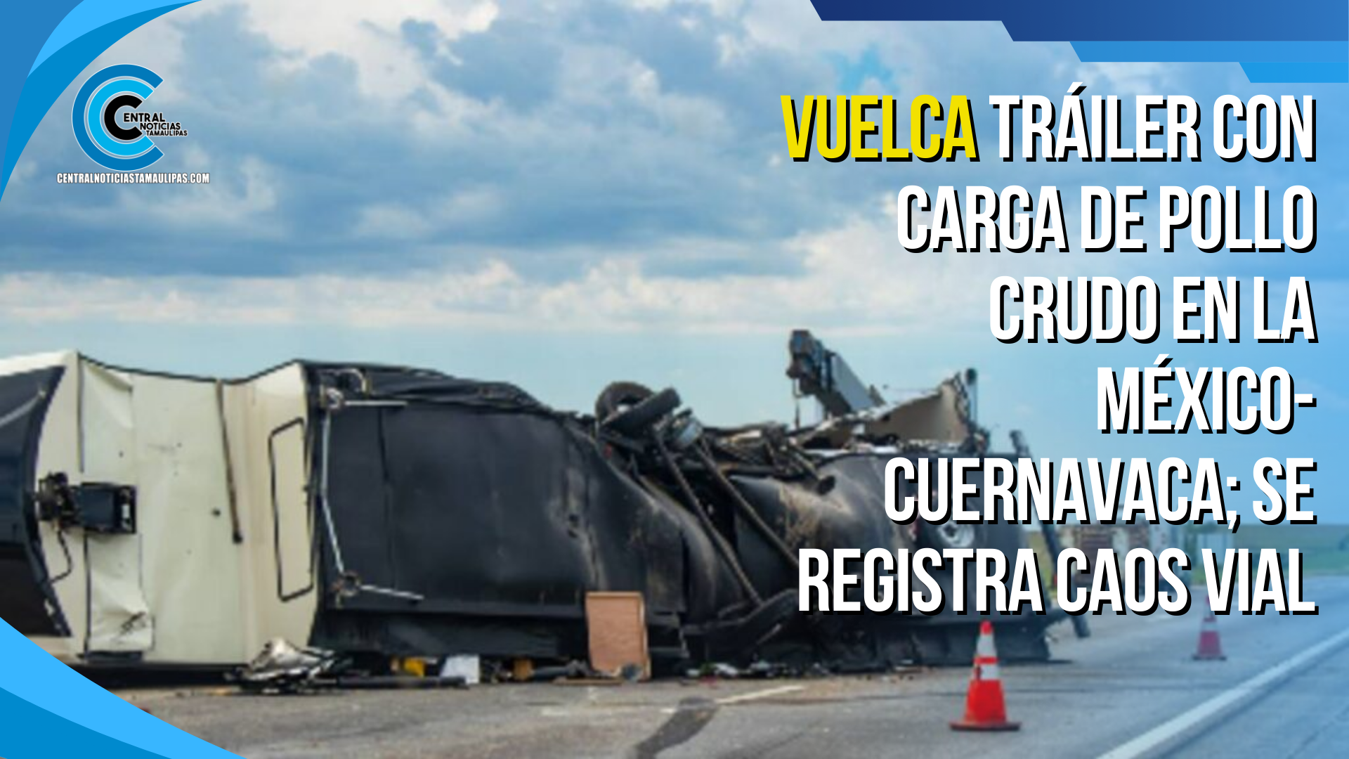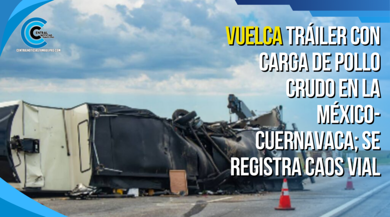 Vuelca tráiler con carga de pollo crudo en la México-Cuernavaca; se registra caos vial