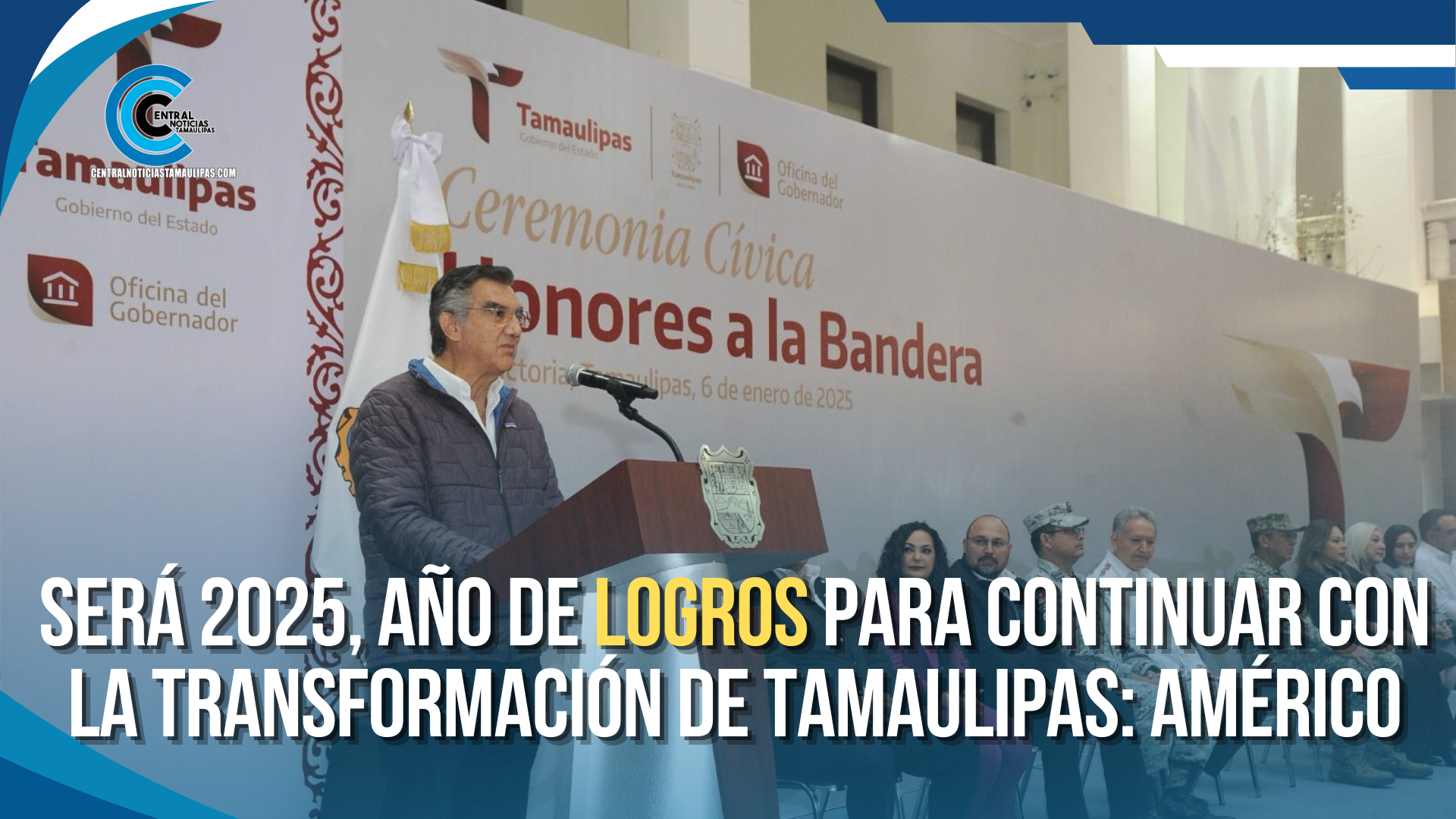 Al presidir la primera ceremonia cívica de honores de 2025, en la explanada central de Palacio de Gobierno, el mandatario tamaulipeco llamó a las y los servidores públicos a trabajar en una agenda humanista, con gran ahínco y dedicación, para seguir transformando a Tamaulipas.