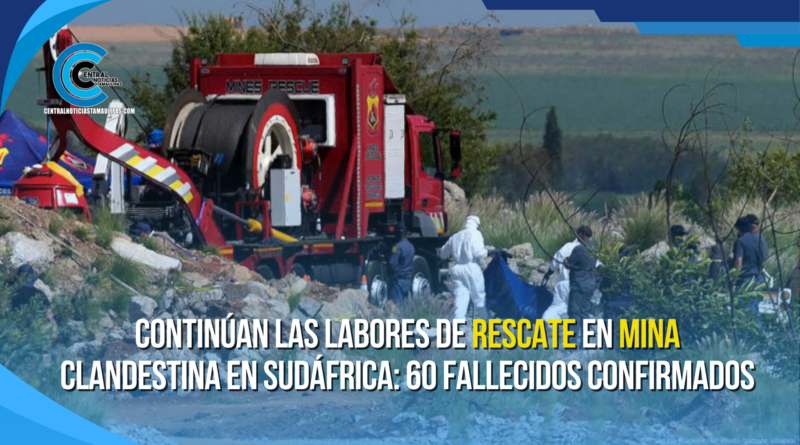 Las autoridades han confirmado la recuperación de 60 cuerpos de mineros clandestinos desde el inicio de las operaciones de rescate el pasado lunes en una mina de oro en Buffelsfontein, ubicada a unos 160 kilómetros de Johannesburgo. El lugar, utilizado para la minería ilegal, ha sido escenario de un operativo que busca desalojar a cientos de personas atrapadas en condiciones precarias desde hace más de dos meses.