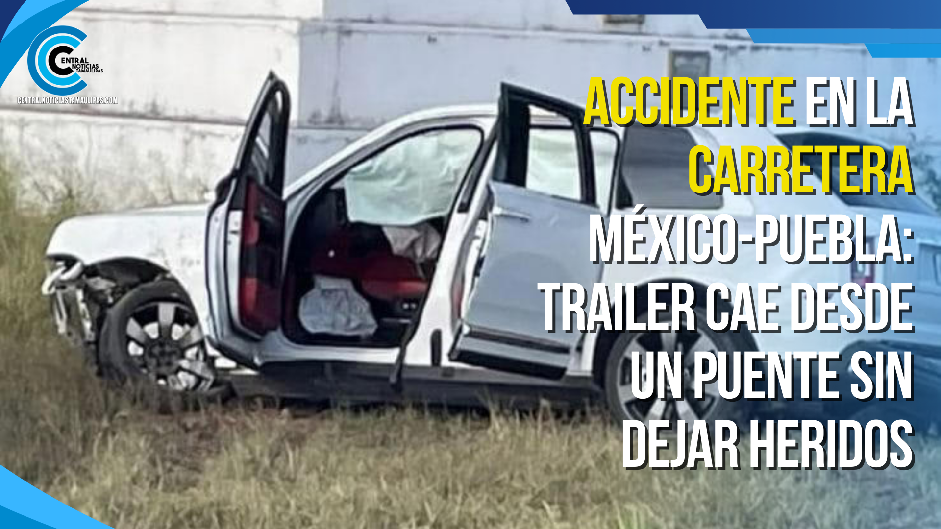 Accidente en la carretera México-Puebla: Trailer cae desde un puente sin dejar heridos