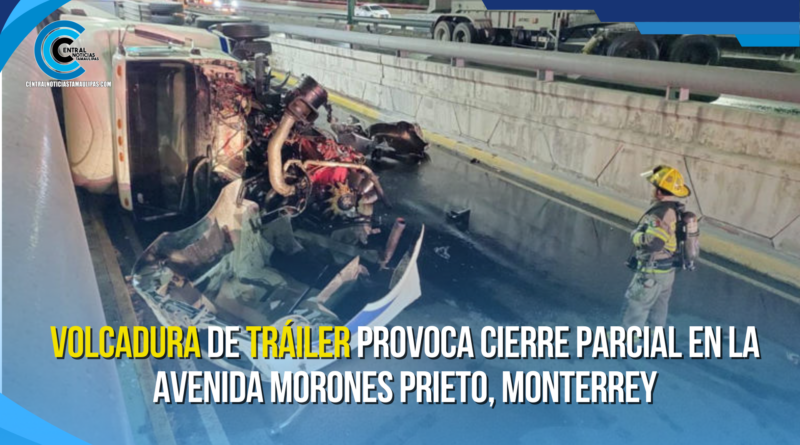 La volcadura de un tráiler durante la mañana de este viernes generó el cierre de los carriles ordinarios de la avenida Morones Prieto, a la altura de la colonia Pío X. Afortunadamente, no se reportaron personas lesionadas en el incidente.