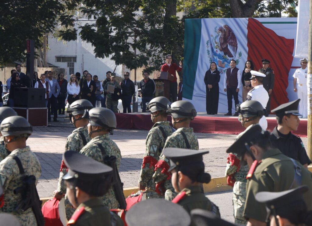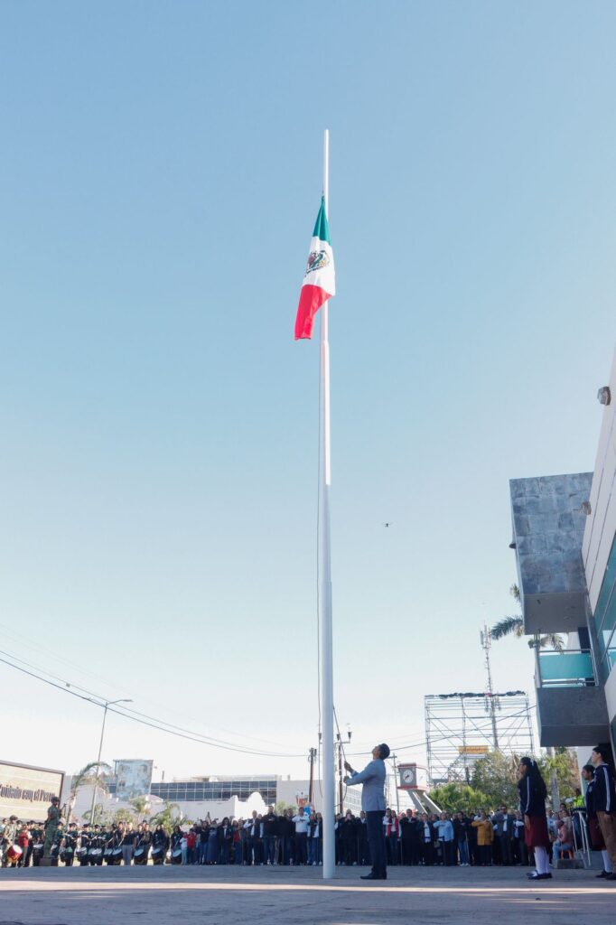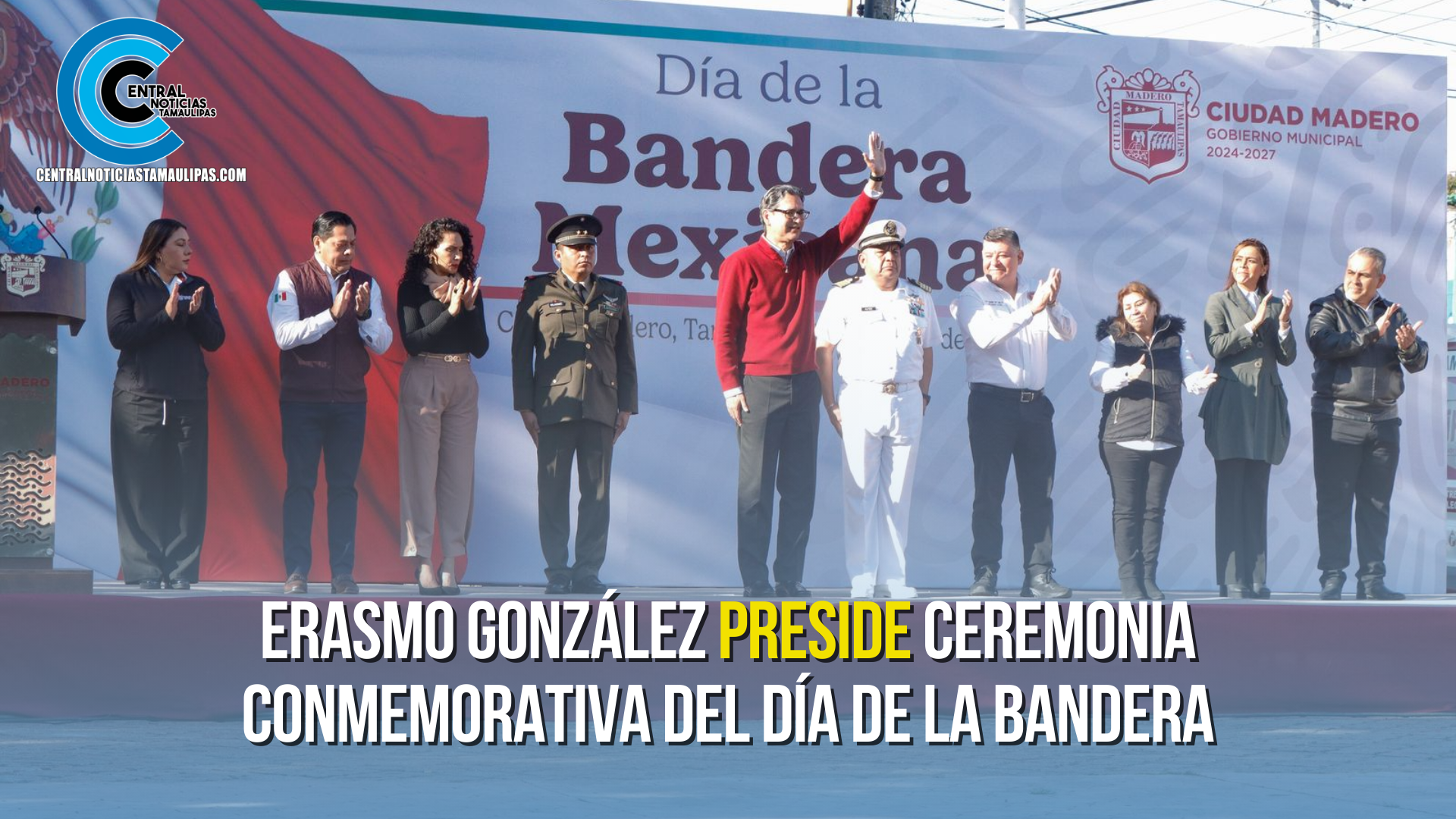 Al recordar el sacrificio de mujeres y hombres que soñaron con un México libre y soberano, el presidente municipal, Erasmo González Robledo, presidió la ceremonia conmemorativa del 85 aniversario del Día de la Bandera, lienzo que representa la esperanza, la pureza, la pasión y el valor.