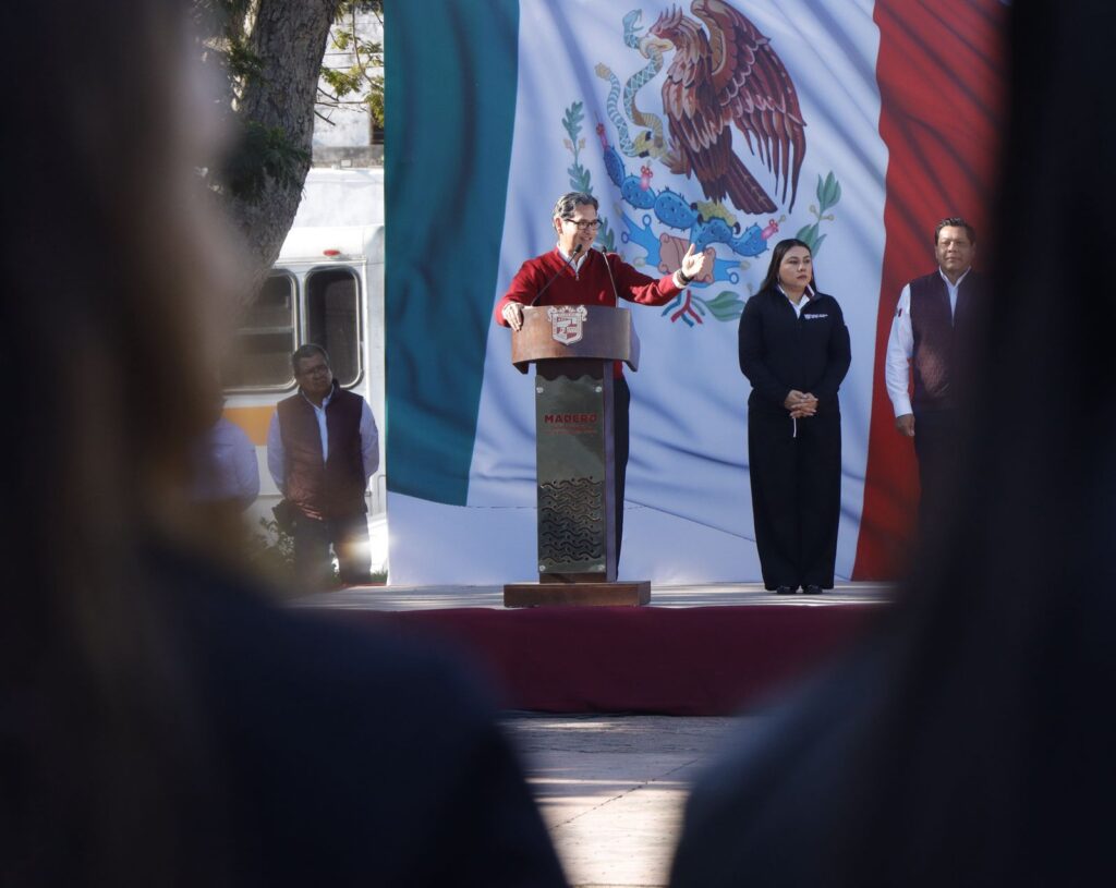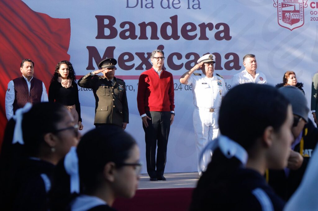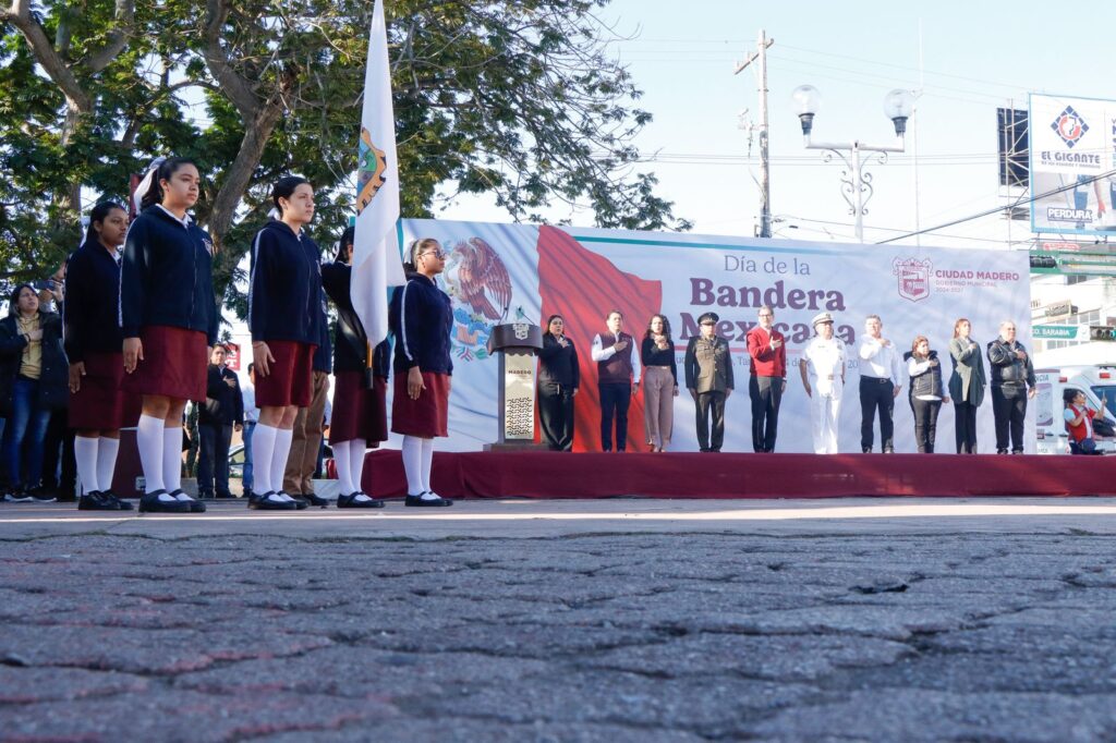 Luego de llevarse a cabo el izamiento de la Bandera y entonación del Himno Nacional en la explanada de la Presidencia Municipal, el alcalde maderense destacó que esta fecha evoca nuestro compromiso con los ideales que nuestra enseña representa, a ser ciudadanos responsables y solidarios.
