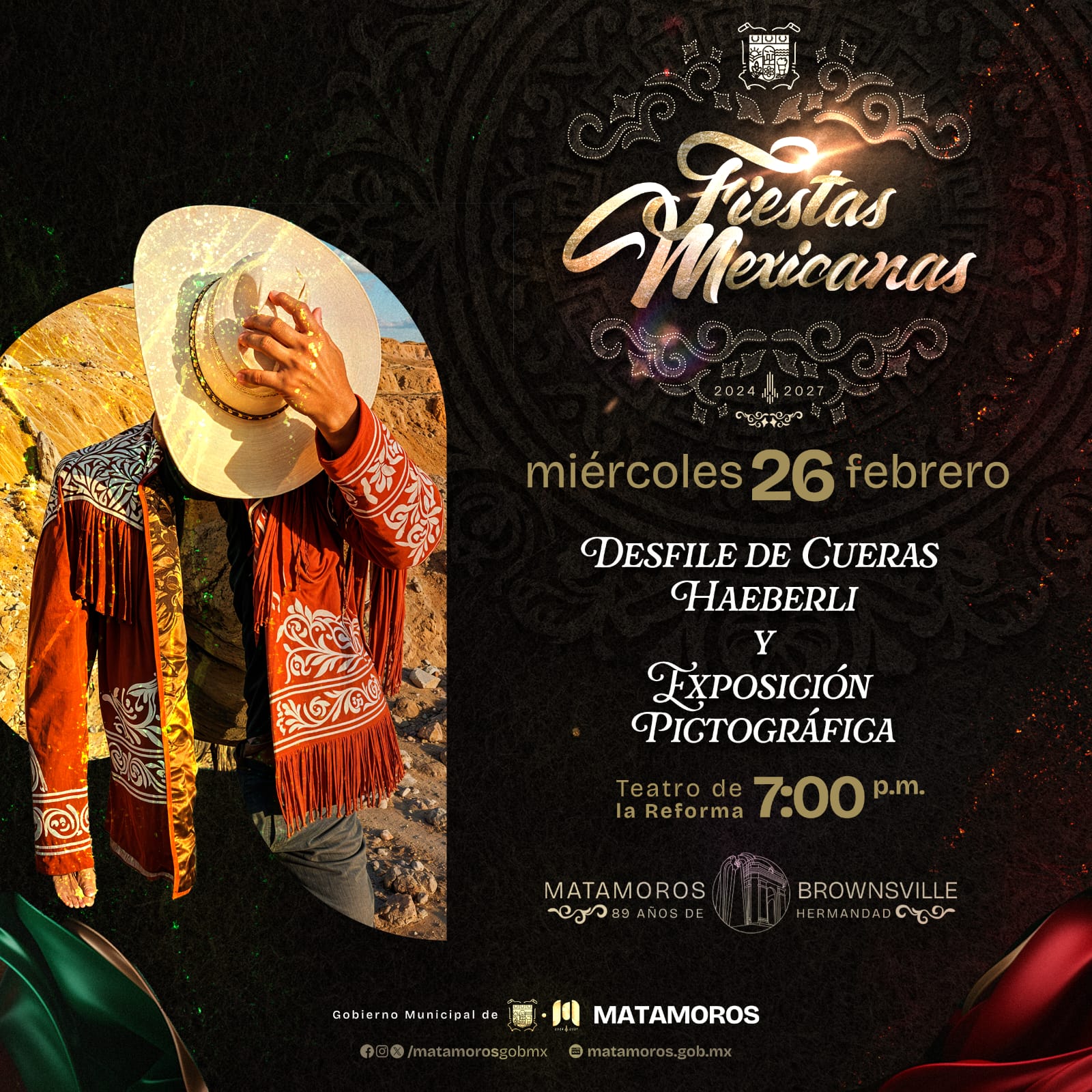 H. Matamoros, Tam.- Con un desfile de cueras Haeberli y una exposición pictográfica, este miércoles continúan las actividades de las fiestas mexicanas en Matamoros, afirmó el alcalde, Beto Granados.