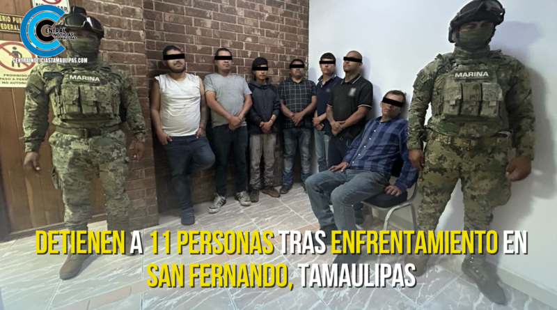 En un operativo conjunto, elementos de la Secretaría de Marina (Semar), en coordinación con la Secretaría de la Defensa Nacional (Sedena), la Fiscalía General de la República (FGR), la Guardia Nacional (GN) y la Secretaría de Seguridad y Protección Ciudadana (SSPC), detuvieron a 11 personas y aseguraron un arsenal en el municipio de San Fernando, Tamaulipas, tras repeler una agresión armada.