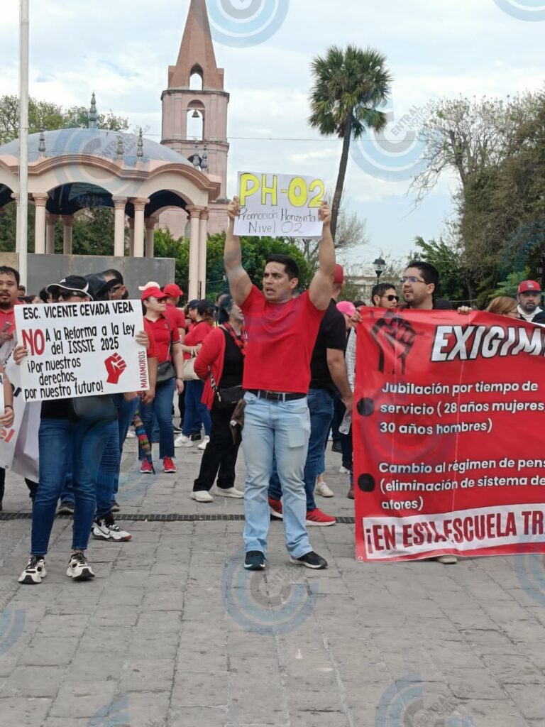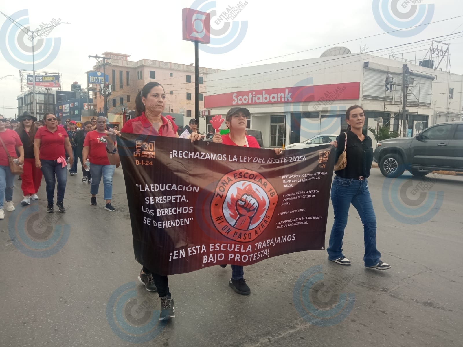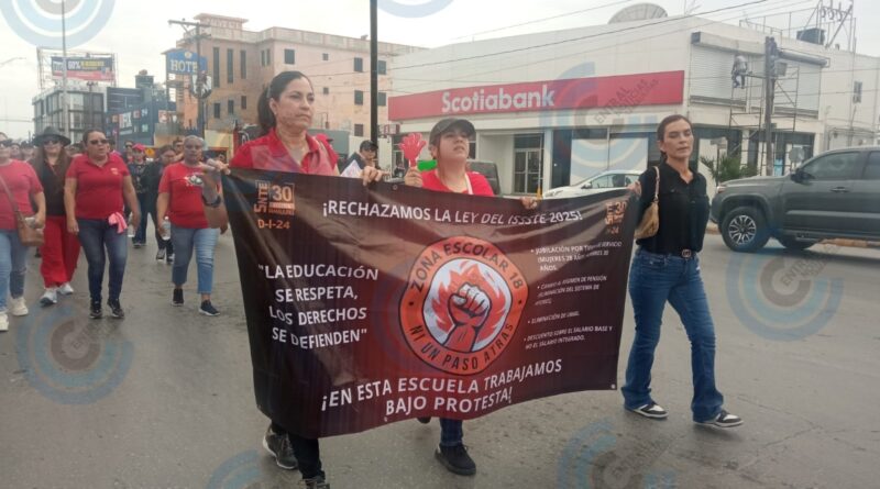 La tarde de este viernes, más de 100 maestros llevaron a cabo una marcha pacífica en rechazo a la reforma a la ley del ISSSTE propuesta por la presidenta de México.