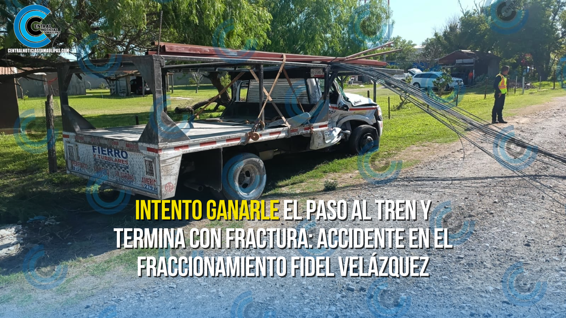 Este miércoles se registró un aparatoso accidente en la entrada del fraccionamiento Fidel Velázquez, donde un camión cargado con fierro y tubulares intentó ganarle el paso al tren, resultando en un fuerte impacto que dejó al conductor con varias lesiones.