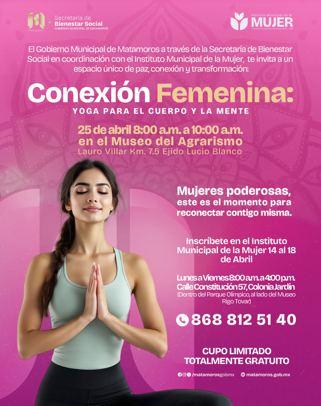Gobierno municipal invita a la conexión femenina; yoga para el cuerpo y la mente