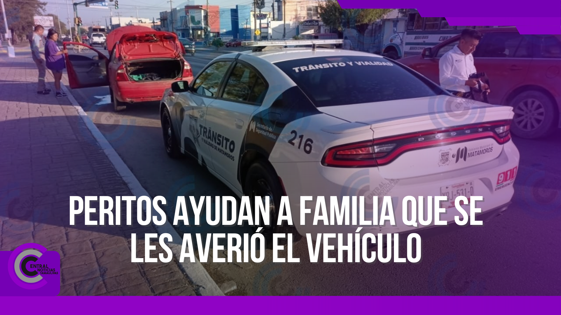 Peritos ayudan a familia que se les averió el vehículo
