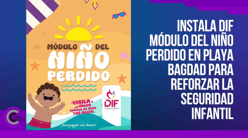 H. Matamoros, Tamaulipas.- Con el firme compromiso de salvaguardar la integridad de las niñas y niños que visitan playa Bagdad durante la temporada vacacional, autoridades del DIF en coordinación con el gobierno municipal han instalado el módulo del niño perdido, como parte del operativo de seguridad y atención al visitante.
