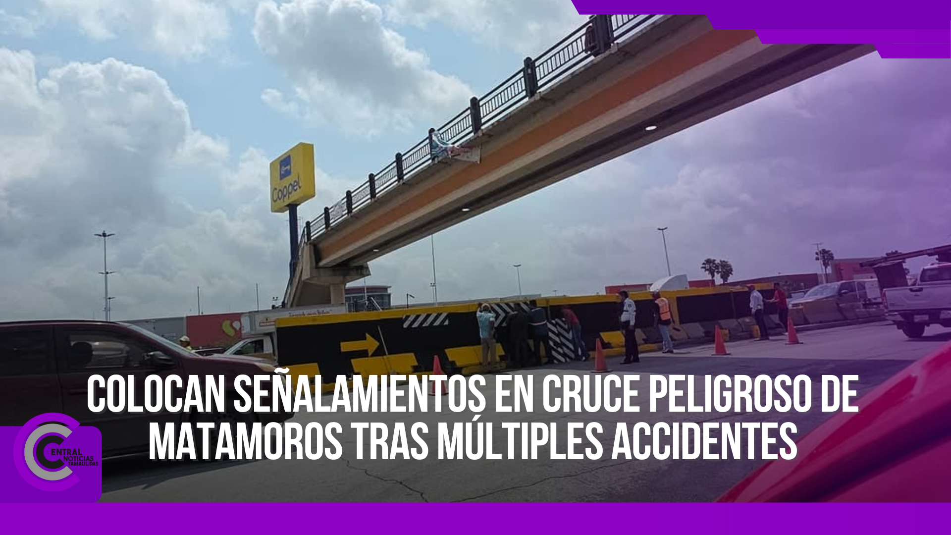 Colocan señalamientos en cruce peligroso de Matamoros tras múltiples accidentes