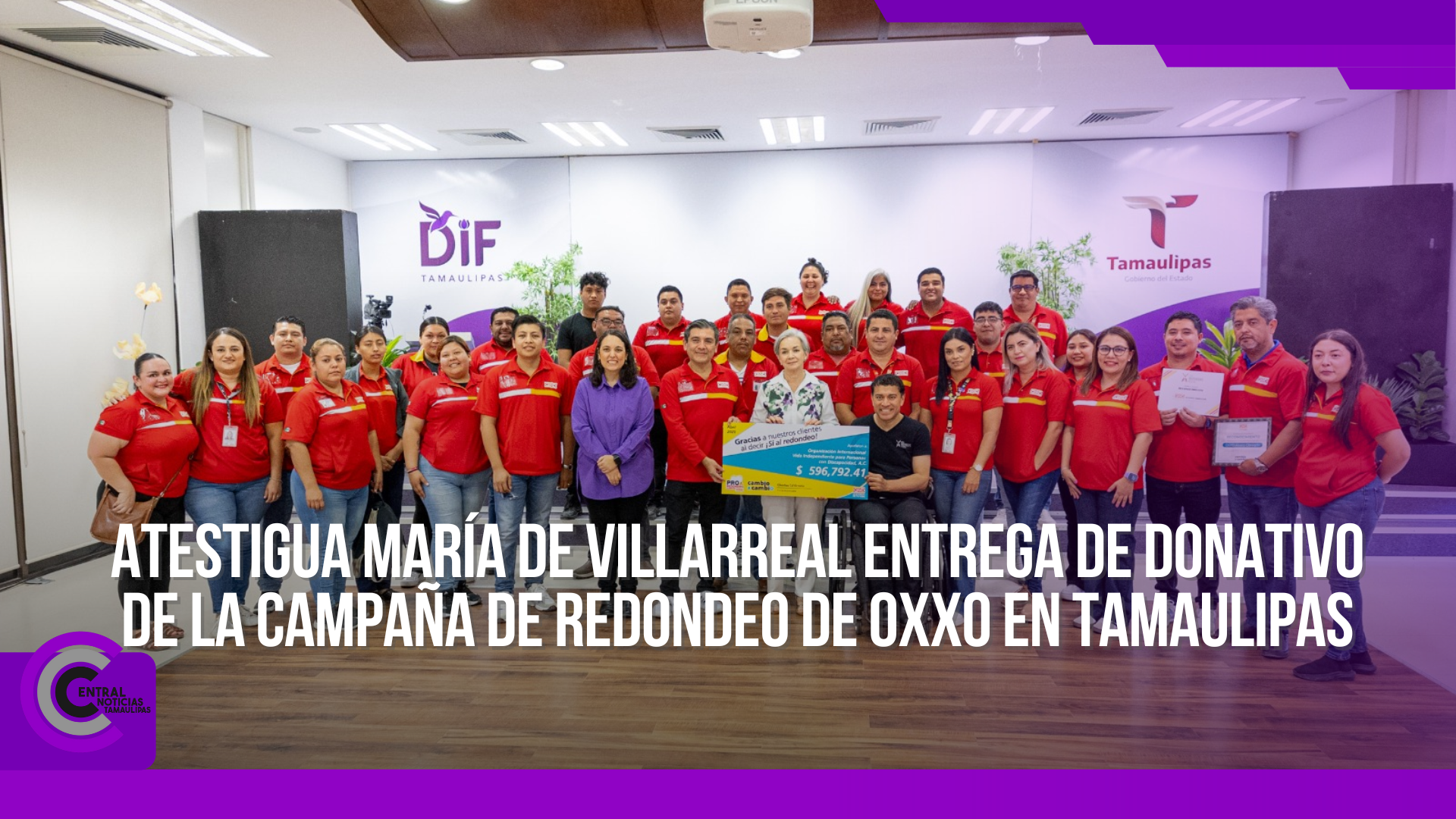 Atestigua María de Villarreal entrega de donativo de la campaña de redondeo de Oxxo en Tamaulipas