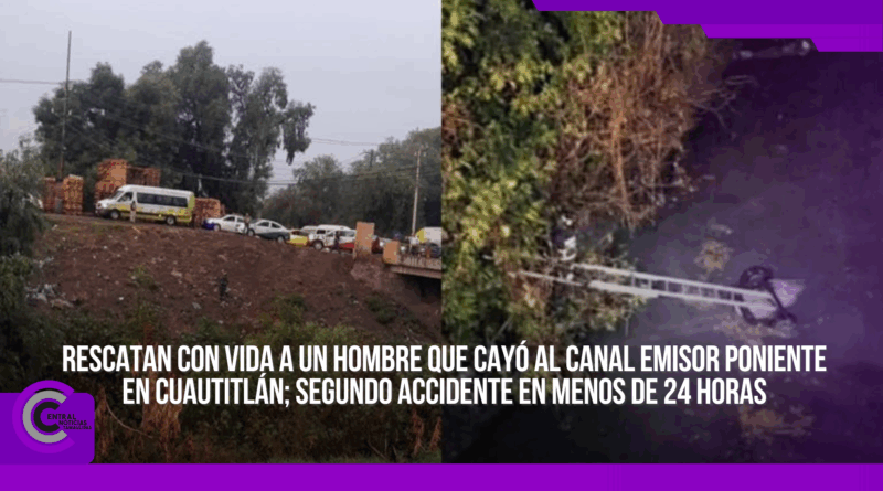 Un hombre fue rescatado con vida este miércoles tras caer al canal Emisor Poniente en Cuautitlán, Estado de México, en un hecho que representa el segundo accidente ocurrido en ese mismo punto en menos de 24 horas.