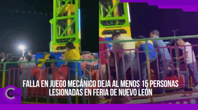 Al menos 15 personas resultaron lesionadas, entre ellas seis menores de edad, luego de que se registrara una falla en el juego mecánico “El Martillo” durante la Feria de El Carmen, en el estado de Nuevo León.