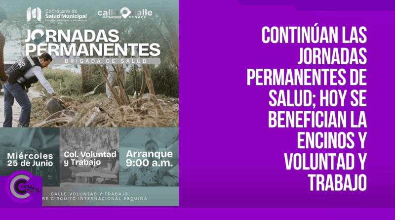 H. Matamoros, Tamaulipas.- Este miércoles 25 de junio, el Gobierno Municipal continúa con las Jornadas permanentes de salud, acercando servicios médicos gratuitos y acciones preventivas a quienes más lo necesitan.
