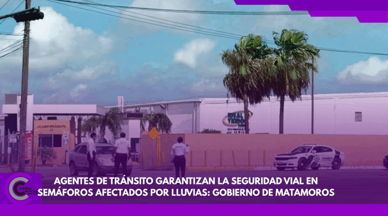 Agentes de Tránsito garantizan la seguridad vial en semáforos afectados por lluvias: Gobierno de Matamoros