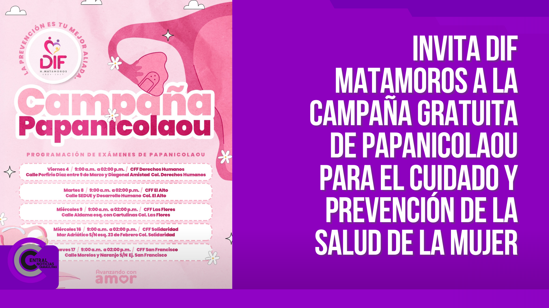 Invita DIF Matamoros a la Campaña Gratuita de Papanicolaou para el cuidado y prevención de la Salud de la Mujer