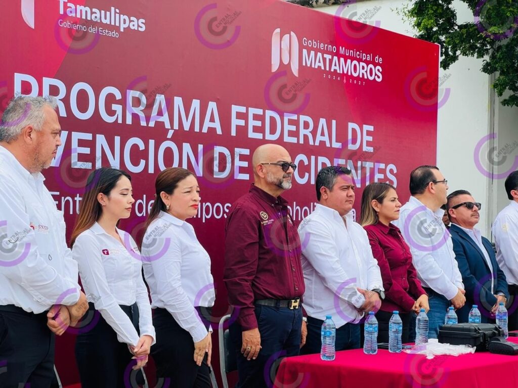 La tarde de este jueves se llevó a cabo la entrega oficial de equipos de alcoholimetría en Matamoros, como parte del programa federal de prevención de accidentes. En el evento estuvieron presentes el secretario del Ayuntamiento, Manuel Perrusquia; el secretario de Seguridad Pública, Eduardo Jeu Silva Capistrán; y el director de Tránsito local, José Luis García Castillo, así como otras autoridades municipales.