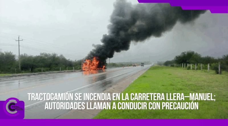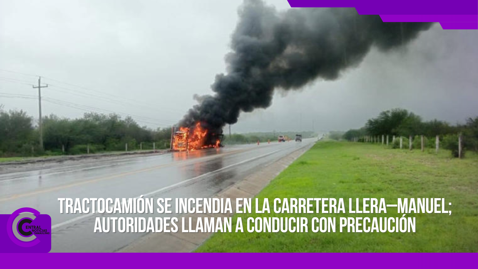 Tractocamión se incendia en la carretera Llera–Manuel; autoridades llaman a conducir con precaución