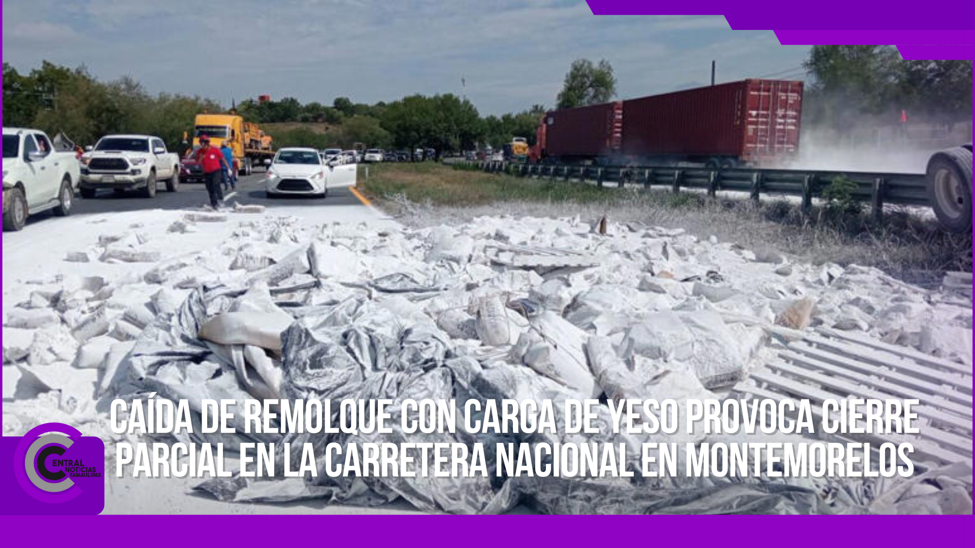 Caída de remolque con carga de yeso provoca cierre parcial en la Carretera Nacional en Montemorelos