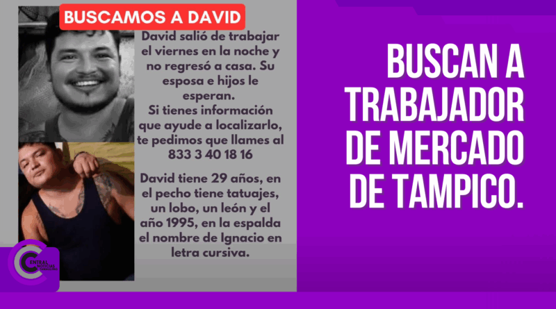 David, es trabajador del Mercado Municipal de Tampico y salió de laborar el viernes por la noche y hasta el momento no se sabe nada de él.