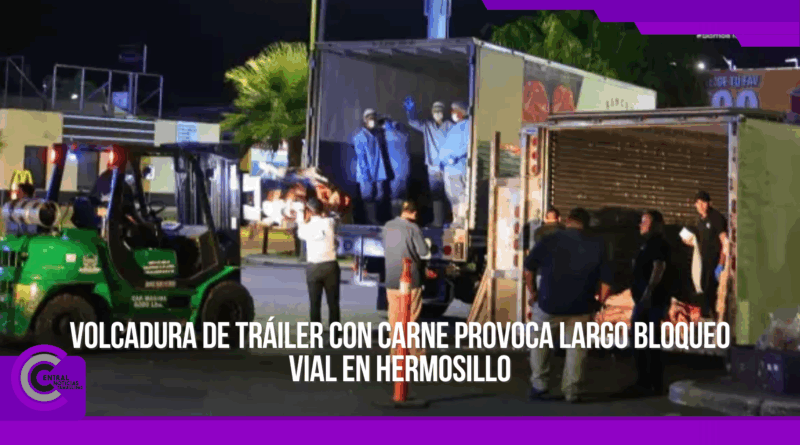 Un tráiler cargado con cerca de 20 toneladas de carne se volcó este miércoles en uno de los cruceros más transitados de Hermosillo, ocasionando un prolongado cierre vial y complicaciones en la circulación por más de ocho horas.