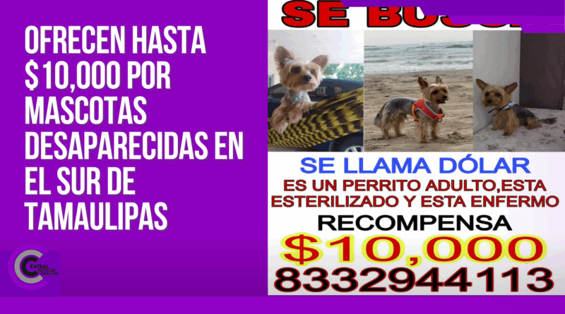 Sur de Tamaulipas. En el sur del estado de Tamaulipas, cada vez es más común ver jugosas recompensas ofrecidas por personas que buscan desesperadamente a sus mascotas extraviadas. Las cantidades van desde $5,000 hasta los $10,000 pesos, dependiendo del caso y del valor emocional que representa el animal para sus dueños.