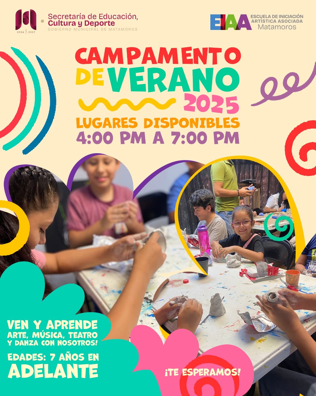 El Gobierno Municipal de Matamoros, encabezado por Beto Granados, a través de la Secretaría de Educación, Cultura y Deporte, hace una cordial invitación a niñas, niños y adolescentes a participar en el Campamento de Verano 2025, organizado por la Escuela de Iniciación Artística Asociada. Esta iniciativa busca ofrecer a las infancias y juventudes una experiencia única llena de creatividad, diversión y aprendizaje.