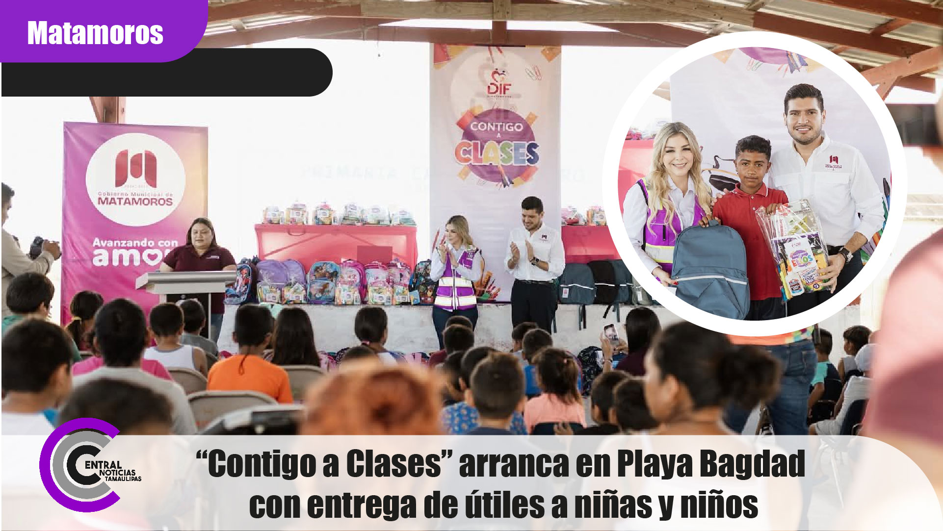 Con el firme compromiso de apoyar la educación y el bienestar de la niñez, la presidenta del Sistema DIF Matamoros Lic. Ana Ariceaga de Granados, dio inicio al programa “Contigo a Clases” en la playa Bagdad, donde se realizó la primera entrega de útiles escolares a niñas y niños de la ciudad, como parte de las acciones que implemento en el mes de julio, que tuvo por objetivo recolectar útiles escolares en beneficio de las niñas y niños vulnerables.