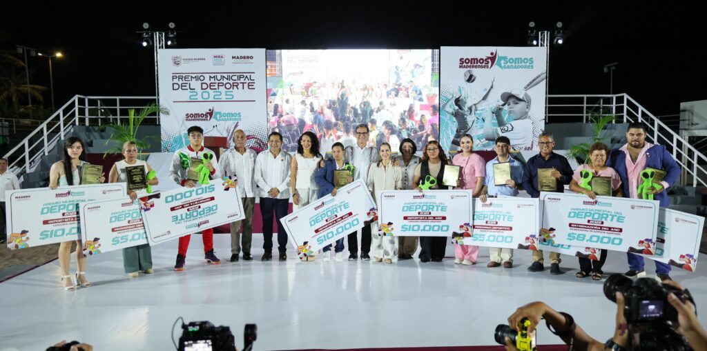 Erasmo González en su mensaje a los deportistas, expresó “Hoy, Ciudad Madero se reúne frente al mar para honrar el esfuerzo, la pasión y la disciplina de quienes han convertido el deporte en una forma de inspiración colectiva. Cada trofeo, cada medalla, cada reconocimiento que hemos entregado es símbolo de un camino recorrido con entrega, constancia y amor profundo por esta ciudad”.