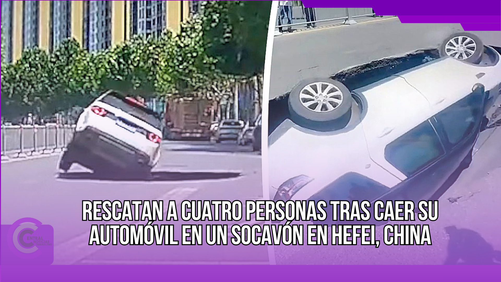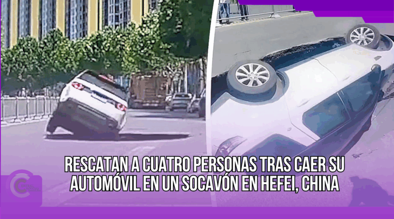 Rescatan a cuatro personas tras caer su automóvil en un socavón en Hefei, China