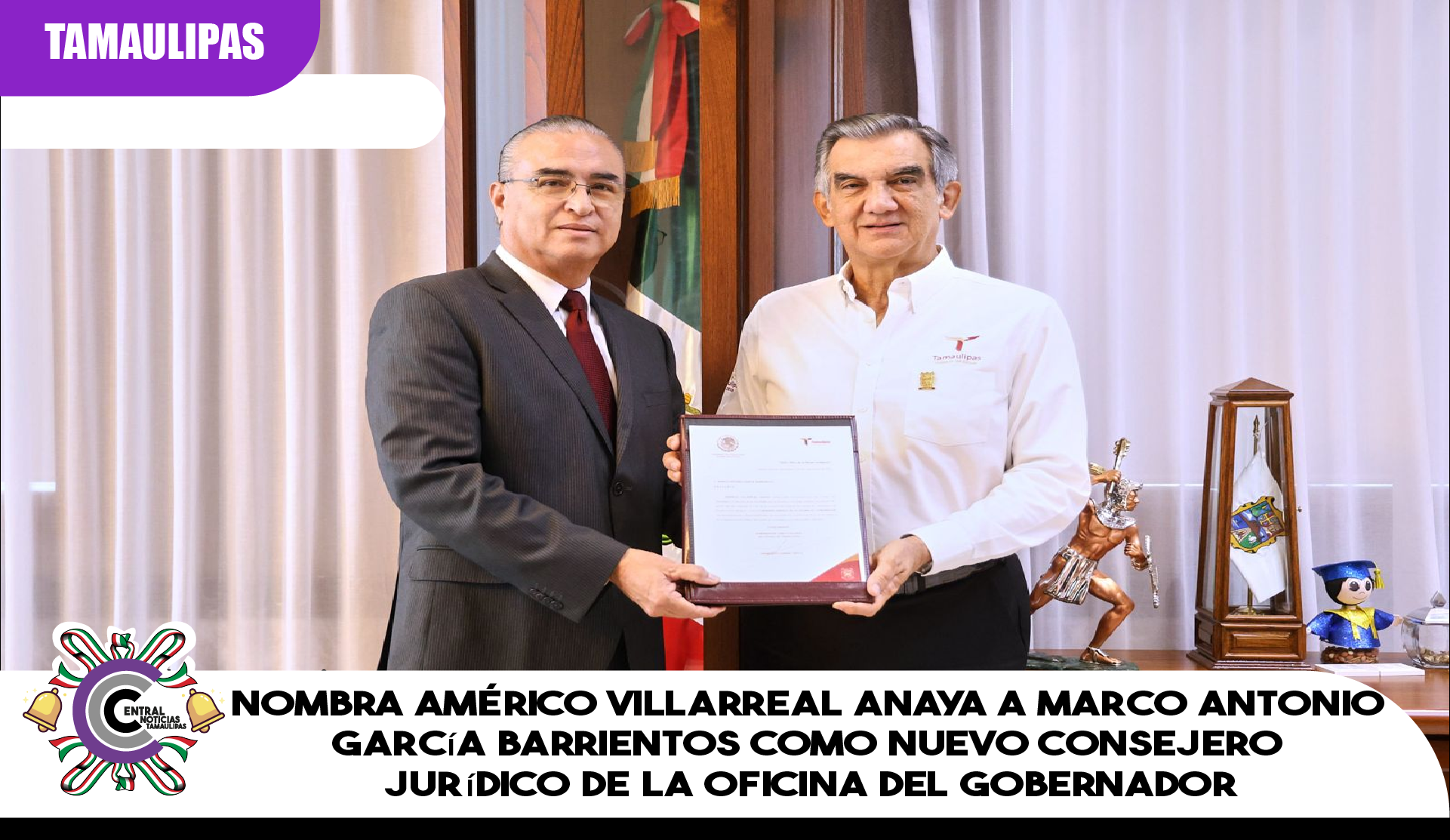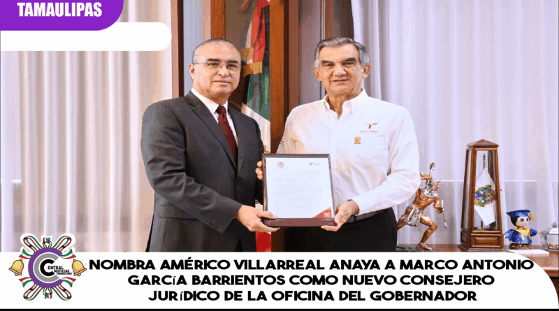 El gobernador Américo Villarreal Anaya, entregó oficialmente el nombramiento a Marco Antonio García Barrientos como nuevo consejero jurídico de la Oficina del Ejecutivo estatal, cargo desde el cual asumirá una responsabilidad clave para fortalecer la legalidad, la transparencia y la justicia en beneficio de las tamaulipecas y los tamaulipecos.