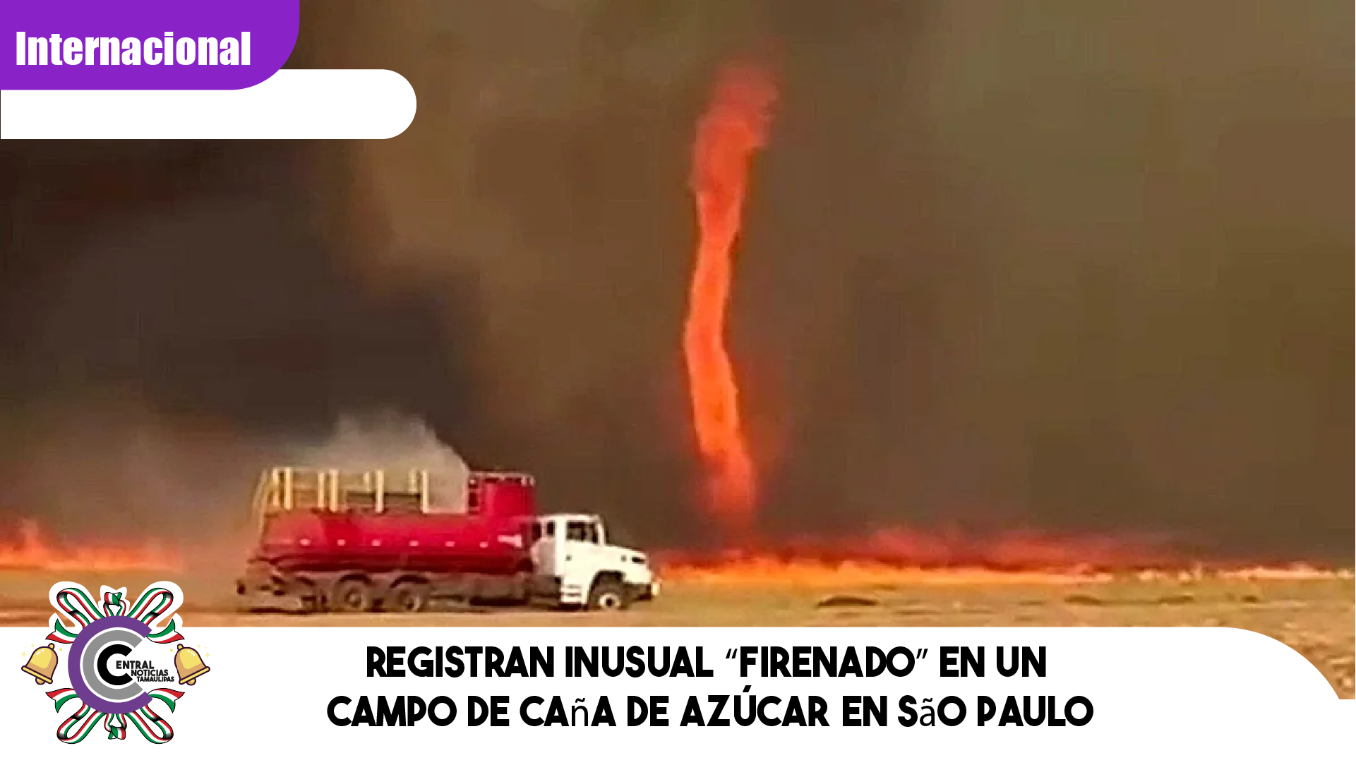Un fenómeno natural poco común sorprendió a pobladores y trabajadores agrícolas en el estado de São Paulo, cuando un “firenado” o remolino de fuego se formó en medio de un incendio en un campo de caña de azúcar.