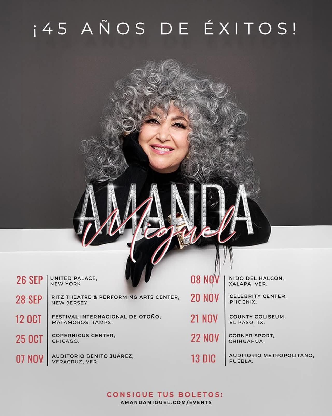 El gobierno municipal de Matamoros, encabezado por Beto Granados, compartió en sus redes sociales la publicación de la reconocida cantante Amanda Miguel, quien anunció oficialmente las fechas de sus próximas presentaciones con motivo de la celebración por sus 45 años de trayectoria artística. Entre estas fechas destaca su participación en el Festival Internacional de Otoño, a realizarse el 12 de octubre en la Plaza Principal de Matamoros.