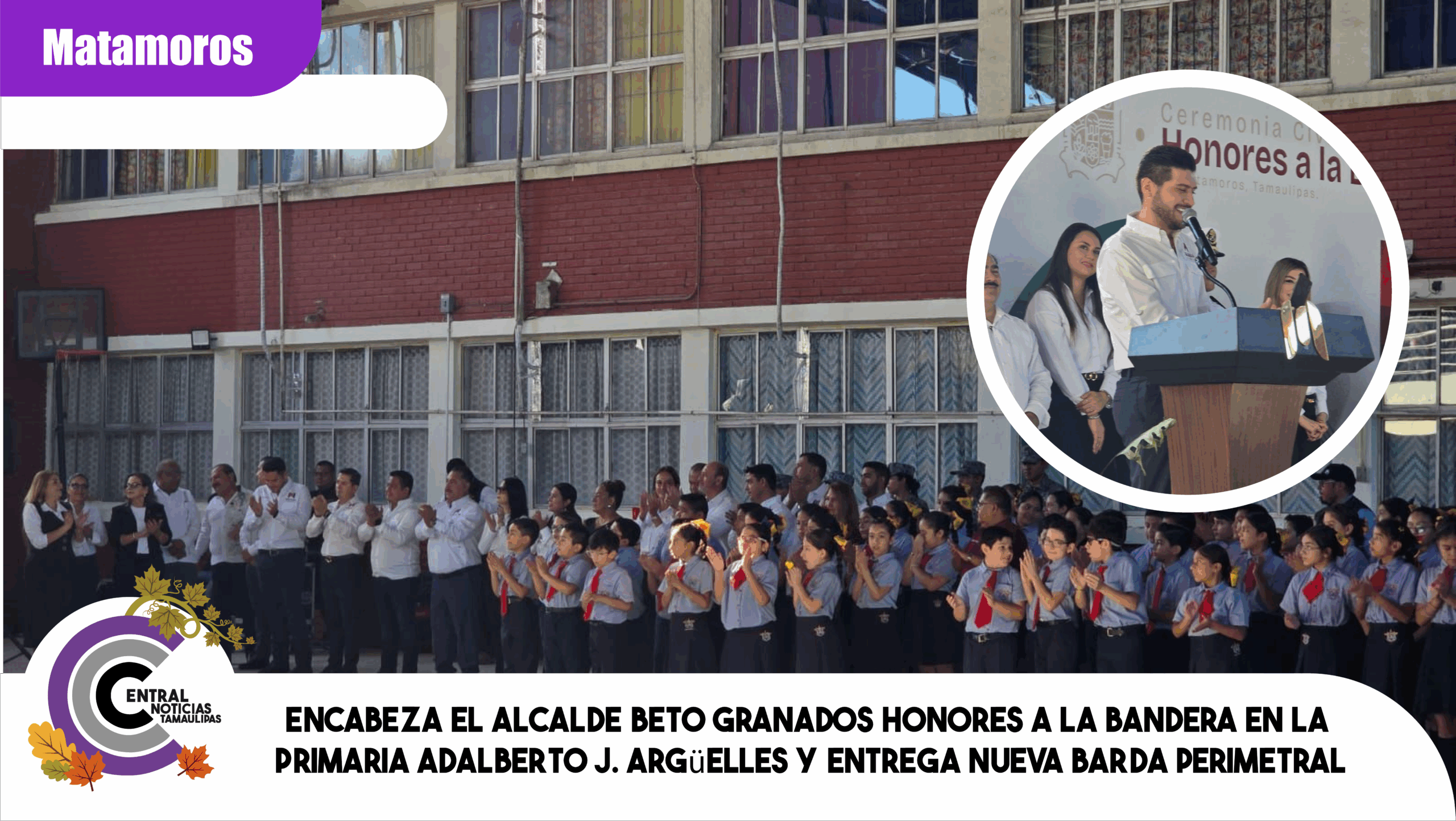 Con el compromiso de seguir fortaleciendo la infraestructura educativa en beneficio de las niñas y niños de Matamoros, el Alcalde Beto Granados encabezó la Ceremonia de Honores a la Bandera en la Escuela Primaria Adalberto J. Argüelles, donde además hizo entrega oficial de la nueva barda perimetral de la institución.