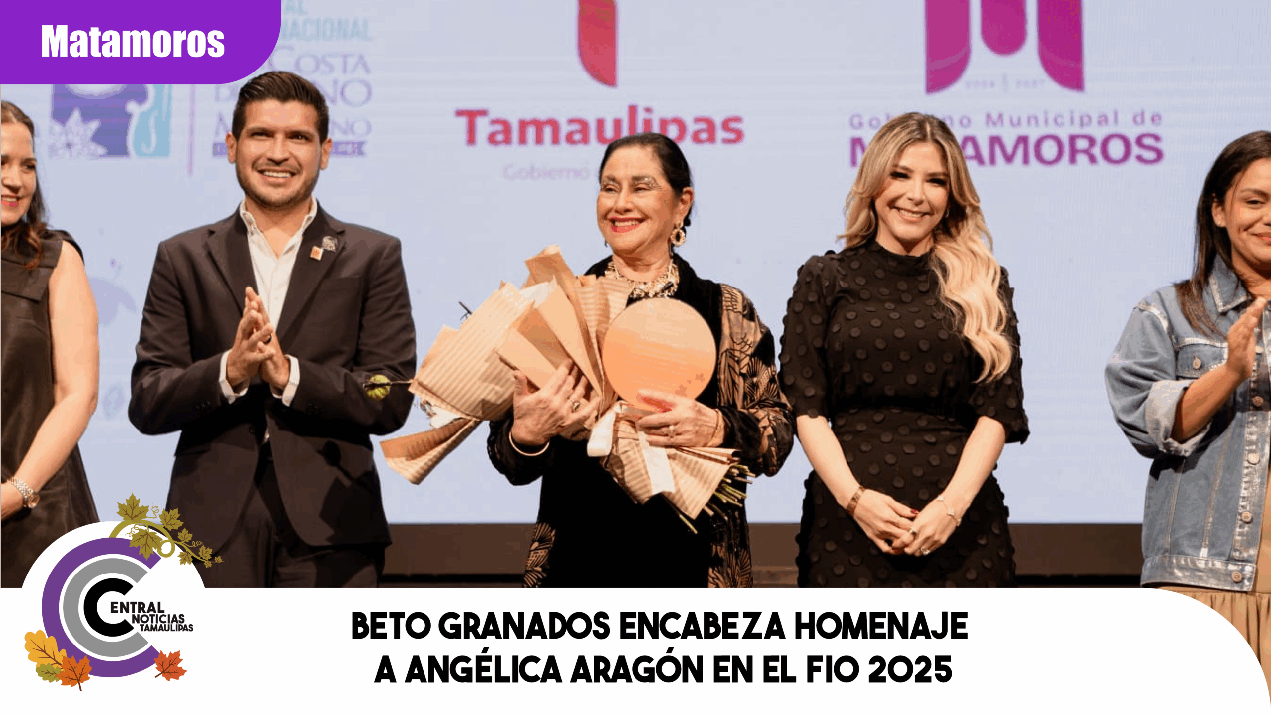 H. Matamoros, Tamaulipas.- El presidente municipal Beto Granados expresó su orgullo por recibir en Matamoros a la primera actriz Angélica Aragón, quien fue homenajeada en el marco del 33° Festival Internacional de Otoño (FIO).