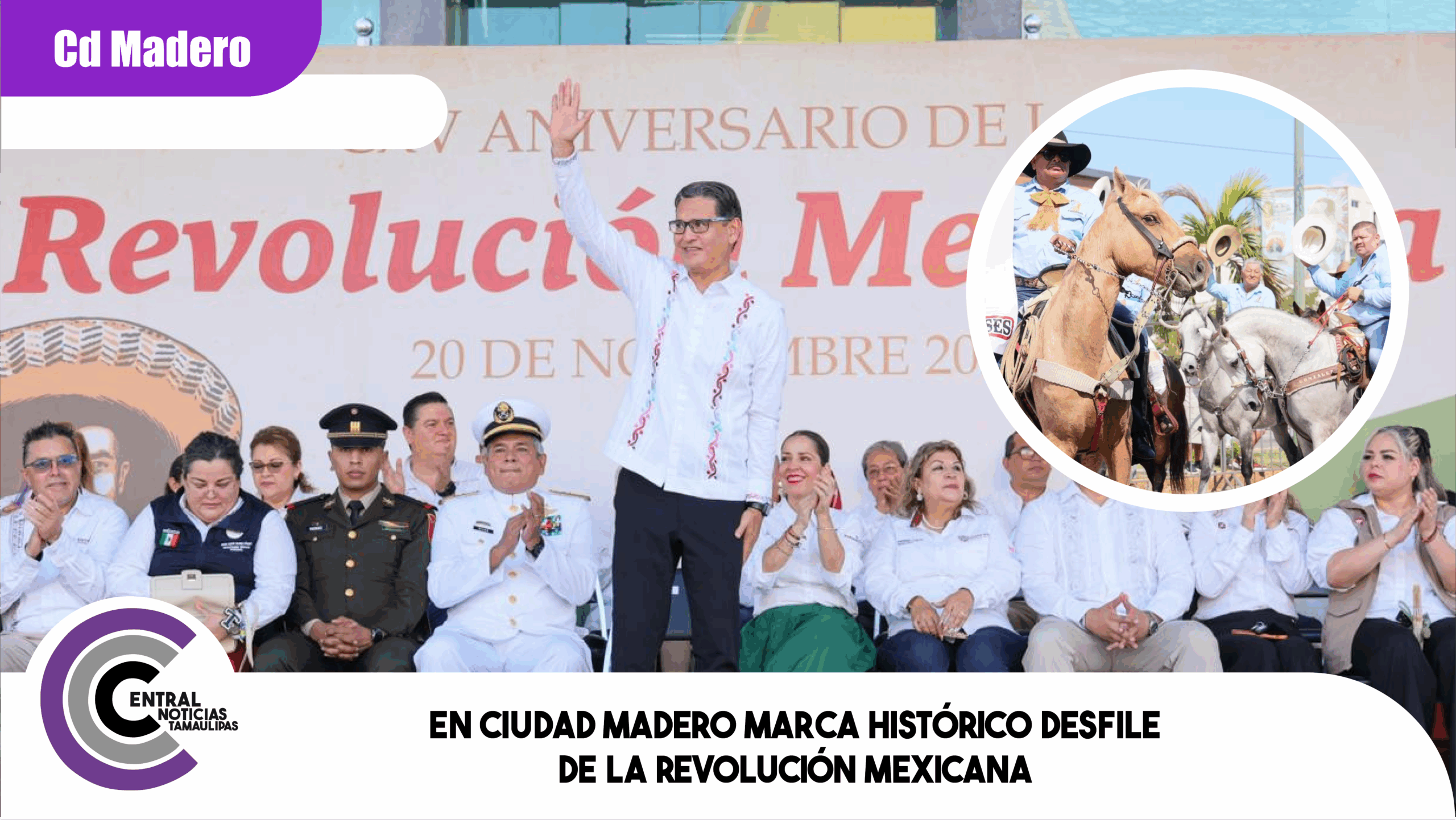 Dentro de la parada revolucionaria, participaron 12 contingentes, 66 instituciones educativas; además el apoyo de 61 unidades motrices, dieron realce la marcha integrante de la charrería. Destacaron la participación del sistema para el Desarrollo Integral de la Familia encabezados por su presidenta Lic. Dunia Marón Acuña; como las instituciones educativas estuvieron escuelas secundarias técnicas y generales, además de los CBTis 103 y 164; el CETis 109, CETMAR; diversas universidades y del Instituto Tecnológico de Ciudad Madero.