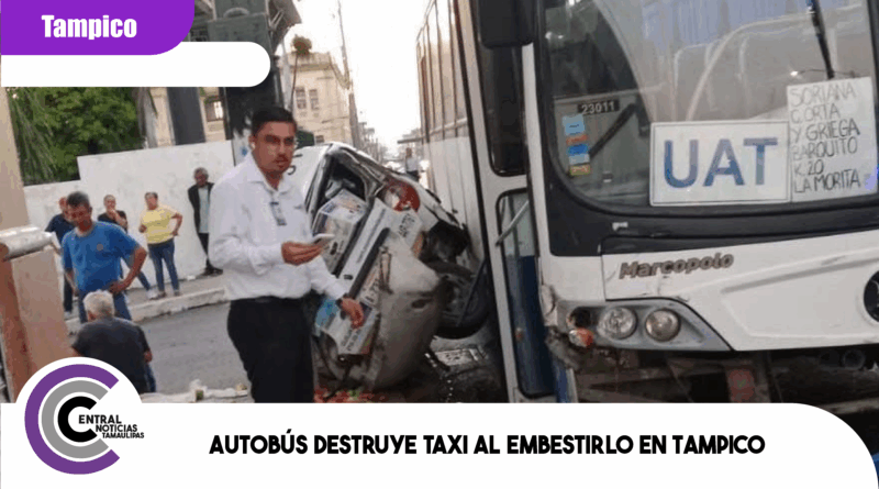 Autobús destruye taxi al embestirlo en Tampico