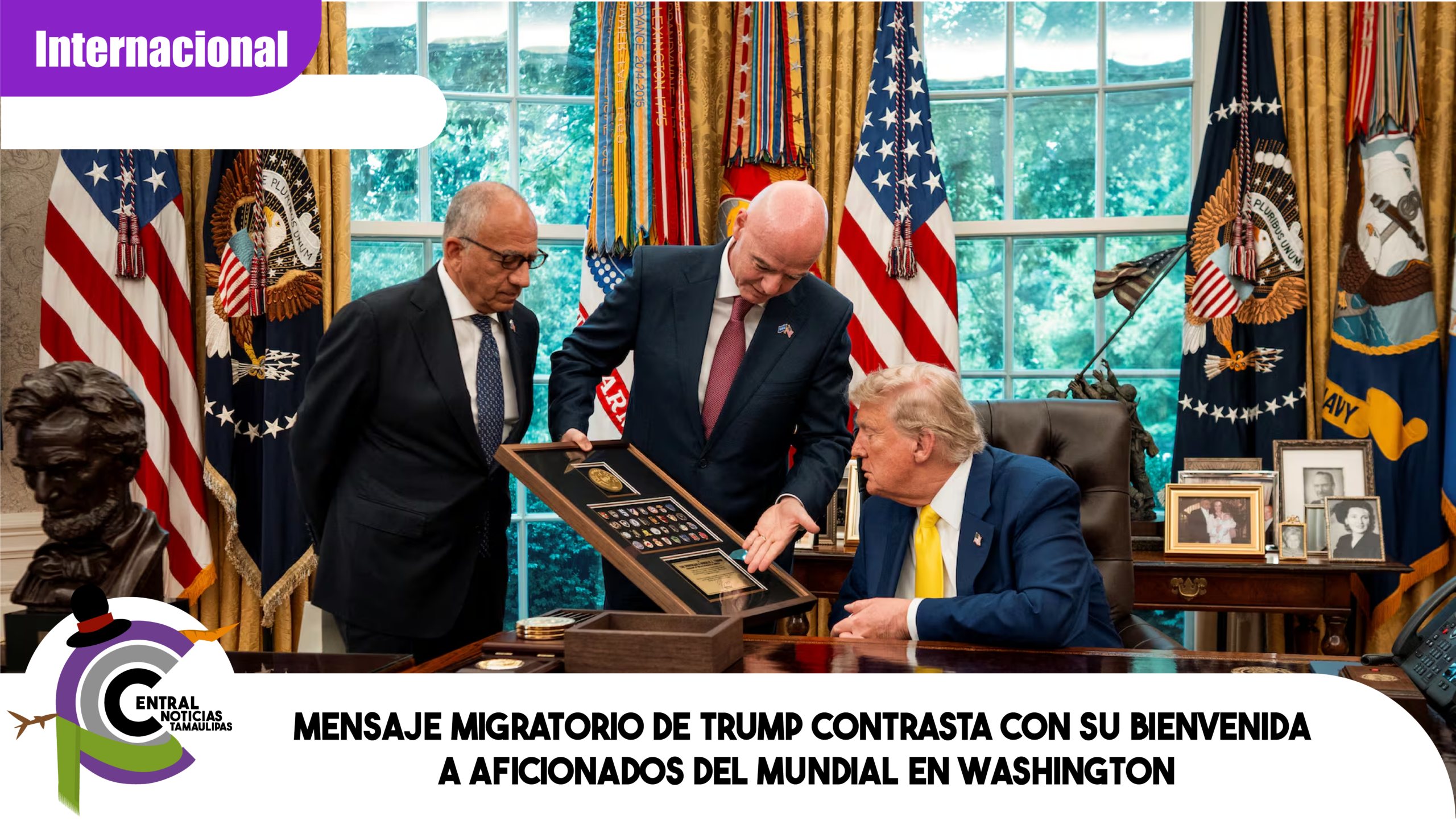 Mensaje migratorio de Trump contrasta con su bienvenida a aficionados del Mundial en Washington